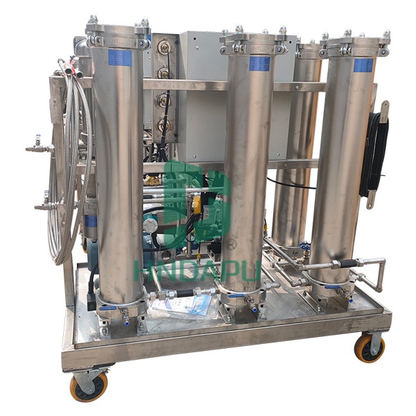 精密過濾:多級過濾系統(tǒng)(如1-5μm精密濾芯)清除顆粒雜質(zhì),提高清潔度(可達(dá)NAS 4-6級)。